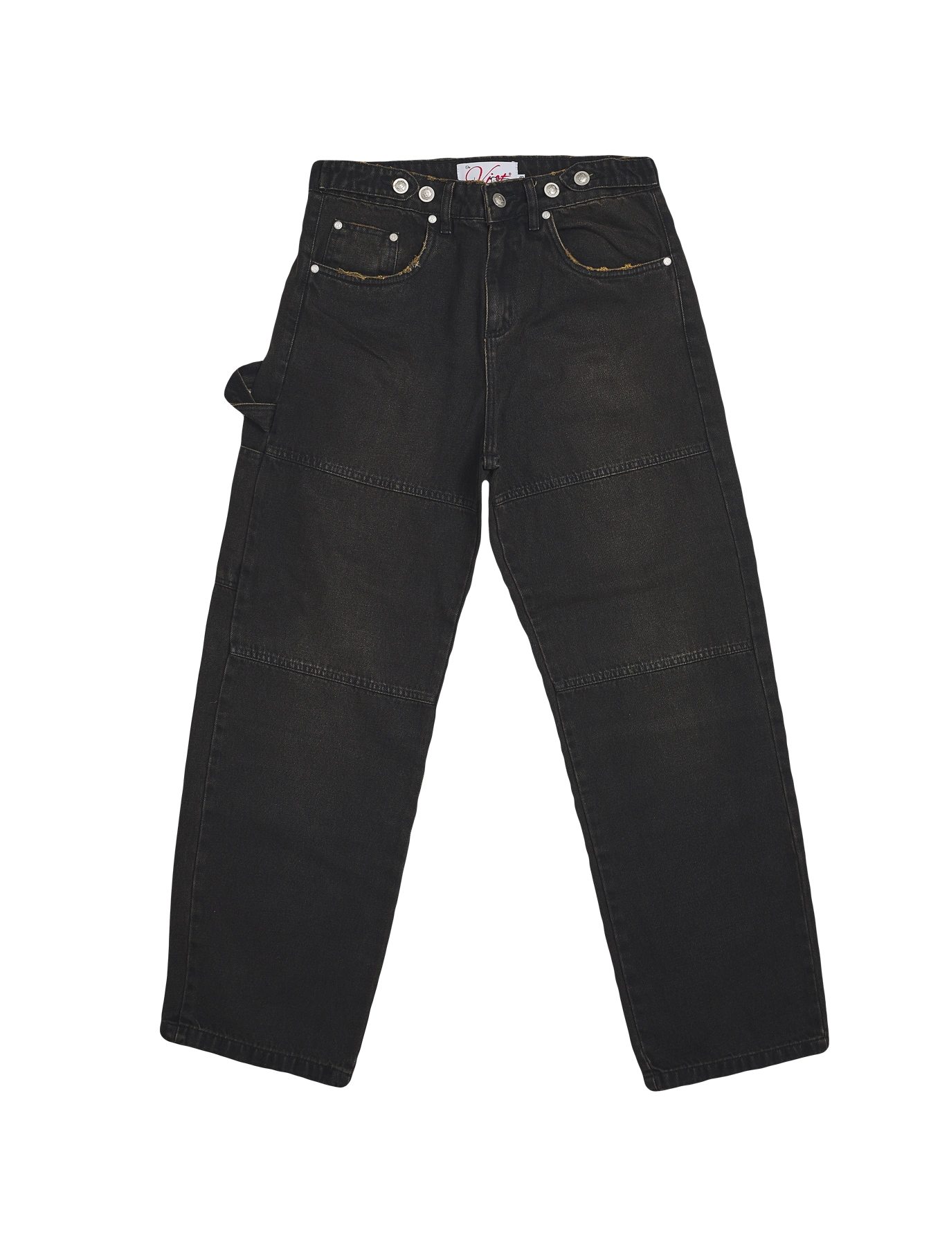 Acabamentos em rebite niquelado e botões personalizados